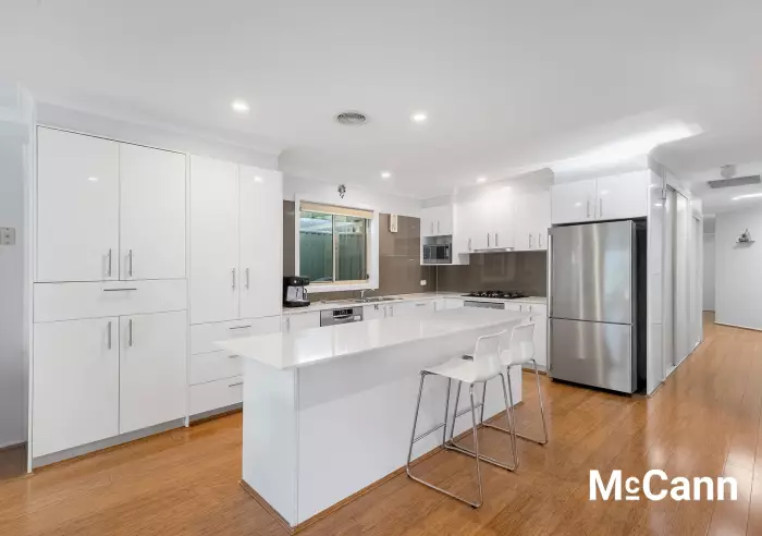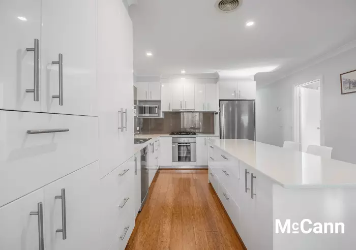 A modern kitchen overlooks the adjoining, open plan living and dining space that is finished with bamboo flooring and good lighting. The kitchen boasts quality appliances including a dishwasher and gas cooking, plus plenty of storage with a pantry, upper cabinetry and additional storage within the spacious, island bench. There is a reverse cycle unit here plus the home includes ducted gas heating for your comfort year-round.