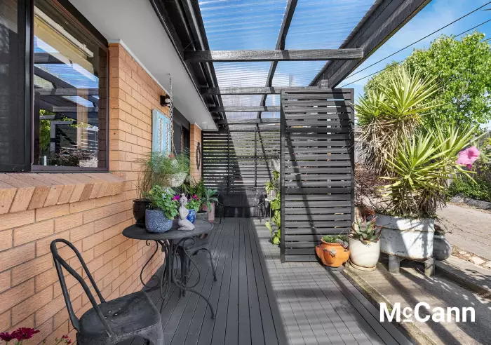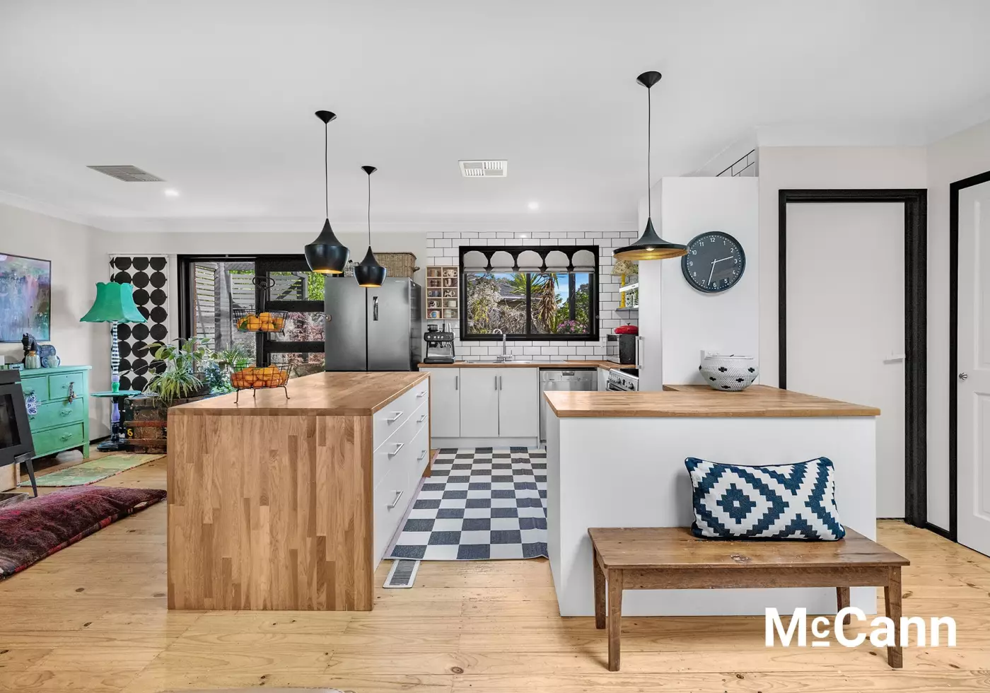 The kitchen is full of personality with stylish design choices. You will enjoy quality stainless appliances including electric cooking and a dishwasher, plus effortless functionality with great storage and timber benchtops. A generous island bench overlooks the adjoining living spaces where you will find a designated dining and living area with timber flooring and a large skylight.