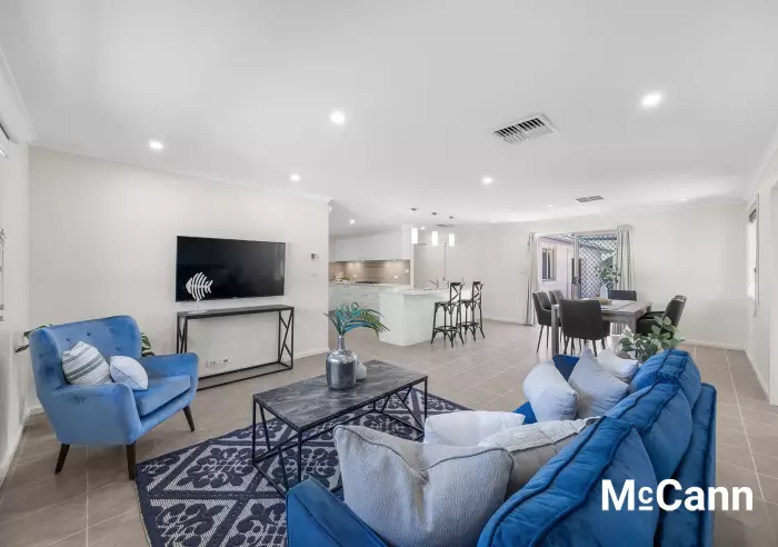 A separate lounge room is flooded with natural light and provides hybrid flooring that is also found in each of the five bedrooms. Beneath the finished hybrid floor premium plywood has been utilised to ensure solid, lasting stability, reduced noise, flawless appearance and an insulation boost contributing to better temperature consistency and potentially reducing energy bills. The master is particularly spacious, offering a walk-in robe, a private ensuite and has a lovely view of the garden through a sliding door access to the backyard. Three of the four remaining bedrooms are equipped with built-in robes while the versatile fifth bedroom is perfect for a home office or study. Four additional bedrooms are serviced by a dedicated main bathroom and a separate toilet for your convenience.
