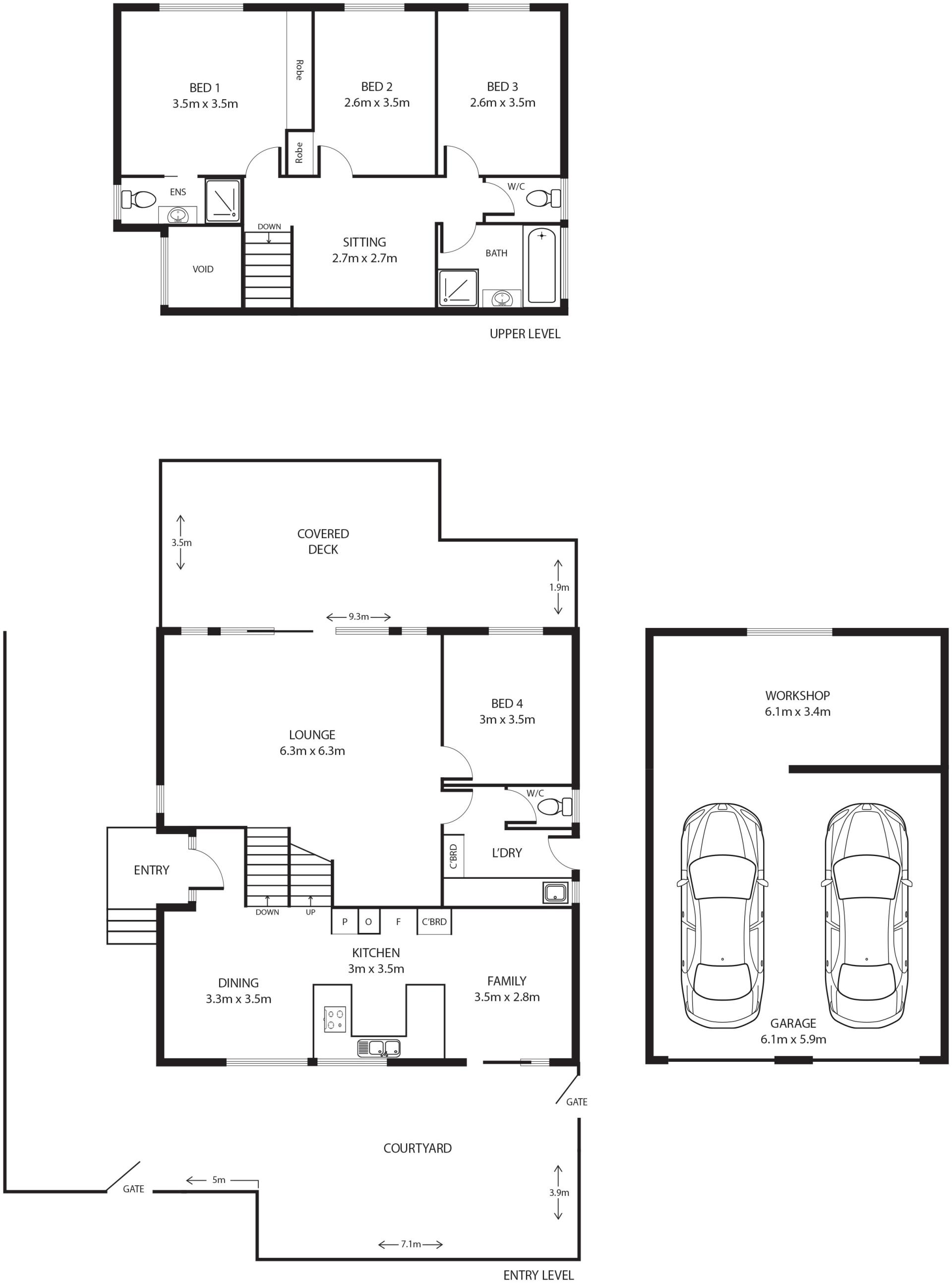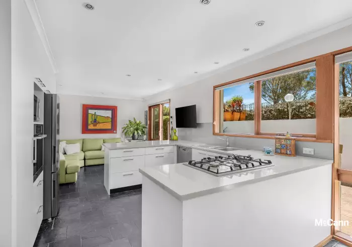 The private, unassuming façade welcomes you into the property via the slightly off-set double garage that includes an additional workshop at the rear. The home is completely private, secured by a front courtyard with gated access, where you will find an extensive paved space ideal for the barbeque or kids to ride their scooters. From here you are welcomed into the home where you will find the family and dining spaces positioned either side of the modern kitchen.