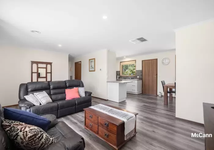 The living spaces include vinyl plank flooring for an easy-care, yet modern finish. The home includes both ducted gas heating and evaporative cooling for your comfort. Four generous bedrooms are provided, all of which include robes. The master bedroom enjoys a segregated position, to maximise privacy and includes a walk-through robe and ensuite.