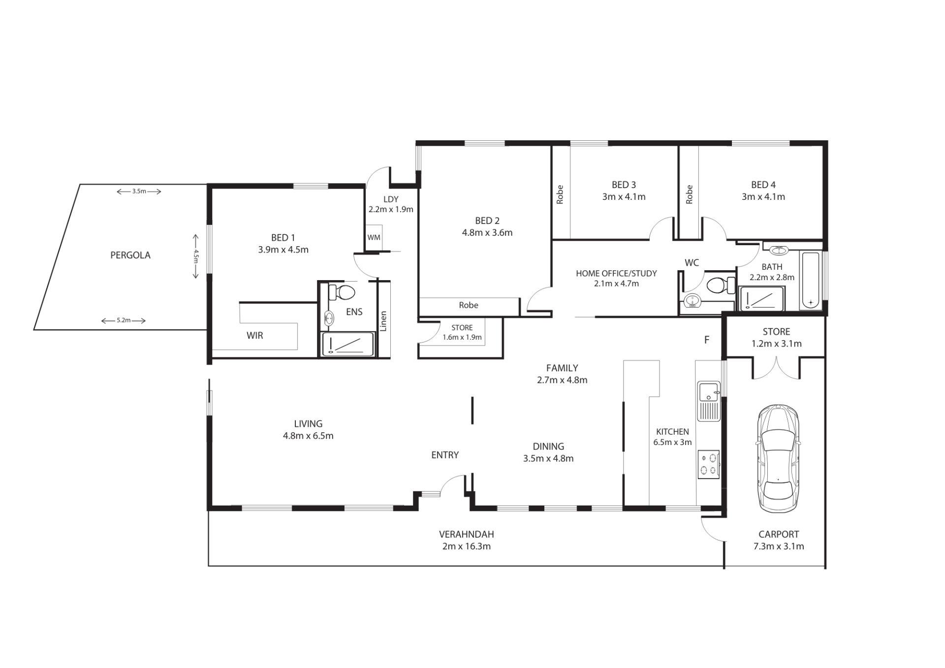 • Remaining three bedrooms have built-in robes