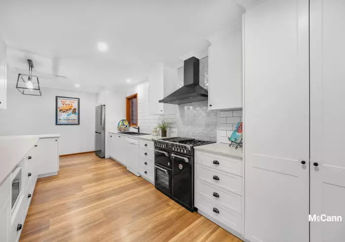 Beautifully renovated by Pioneer, the kitchen includes plenty of storage, bench space for days and quality appliances that include a show stopping Belling stove with a triple oven, which is sure to delight any avid home cook or budding chef. The modern decor includes crisp white cabinetry and subway tile splash back for a timeless finish that pairs perfectly with timber-look flooring that flows into the living spaces.