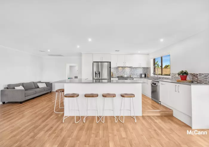 Updated, timber-look flooring flows through the kitchen and living spaces with new carpet in each of the four bedrooms. Bedroom four is positioned close to the master, ideal for a home office or younger children, while the remaining two bedrooms are located separately, perfect for older children seeking their privacy.