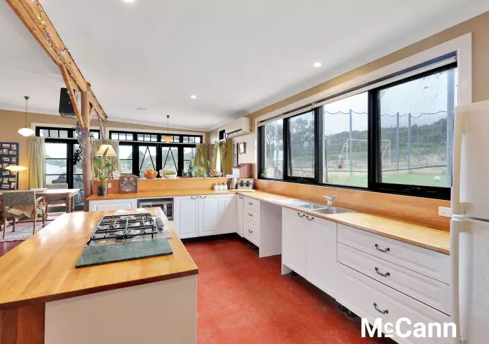 Ideal for large, multigenerational families or those seeking space for seasonal workers or guests, the expansive, eight-bedroom home will provide. The unique design provides two separate kitchens, a variety of living spaces, and three bathrooms. To keep you comfortable year-round there are multiple fireplaces, reverse cycle units and ceiling fans throughout some of the living spaces and bedrooms.