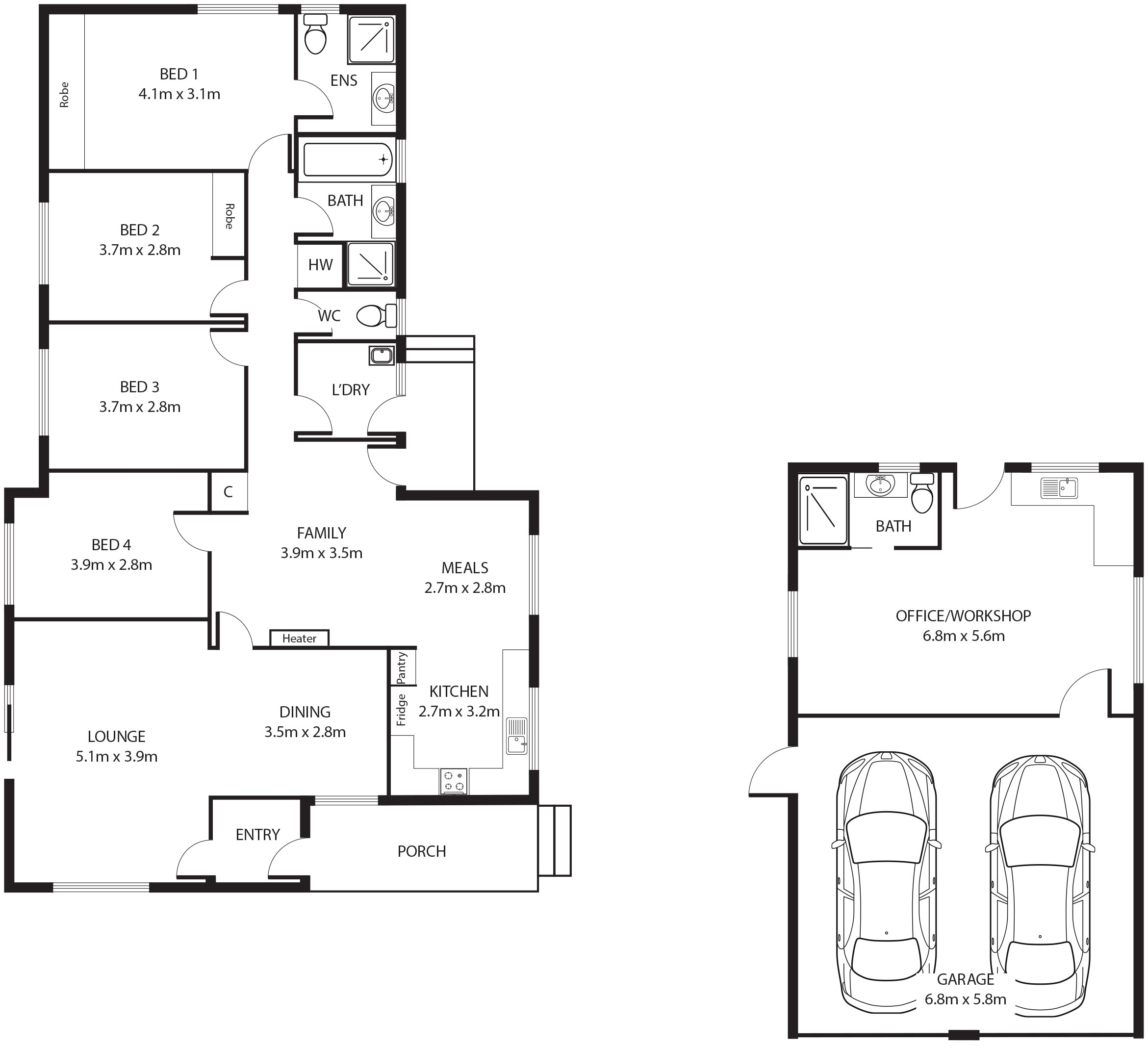 • Self-contained workshop/granny flat with kitchenette and bathroom
