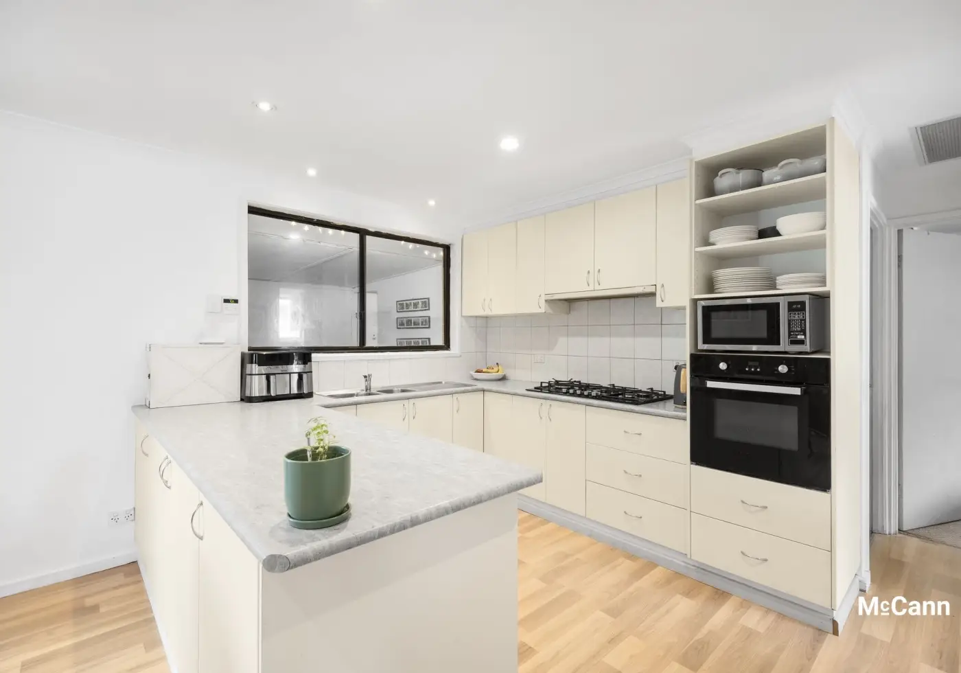 • Modern kitchen with good storage, gas cooktop