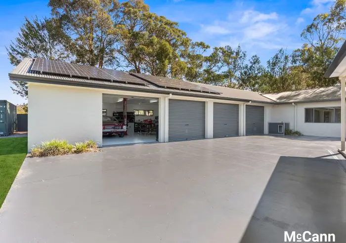 Outdoor living has not been overlooked, with a covered timber deck that extends to a large concrete area that expands the entertaining zone while serving a dual purpose of providing vehicle access to the impressive garage. Offering space for up to 10 cars, the garage is a work of art with two remote doors at the front, an enclosed space ideal for an office and its own bathroom. No matter what your dreams are, you have the space for hobbies, interests, or even a home business here.