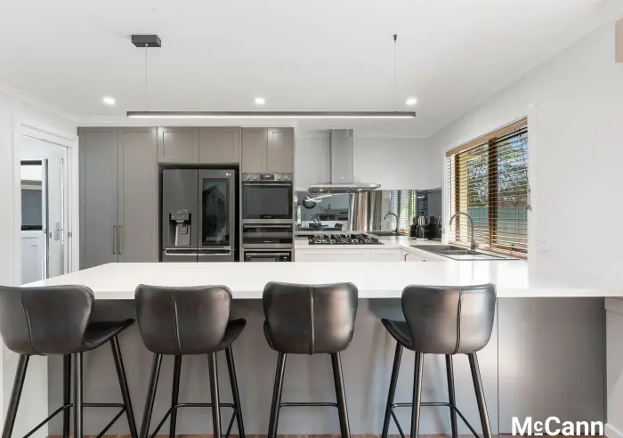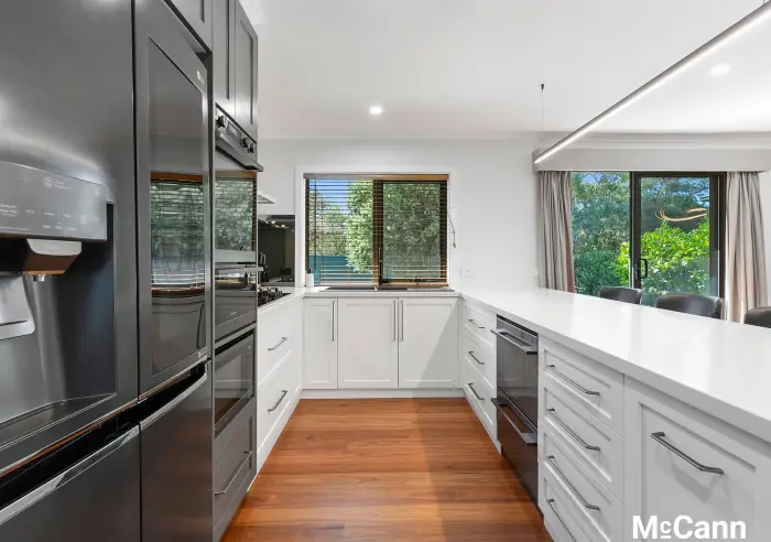The home has been tastefully updated with a modern, timeless design allowing you the convenience to move in and enjoy right away. The spacious kitchen includes plenty of luxury finishes including 40mm Quantum Stone benchtops, quality appliances and Spotted Gum engineered flooring that flows into the adjoining dining space. Storage is plentiful with sufficient cupboards and drawers and a seamless connection into the combined Butler's Pantry and laundry.