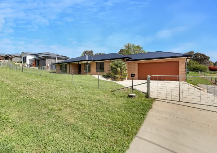 With beautiful indoor features, ducted reverse cycle heating, window treatments and stunning stone featured kitchen it epitomises city flare nestled within the Gunning community. Set low in the natural landscape the home is inviting with easy street access into the double garage and internal access to the house found within.