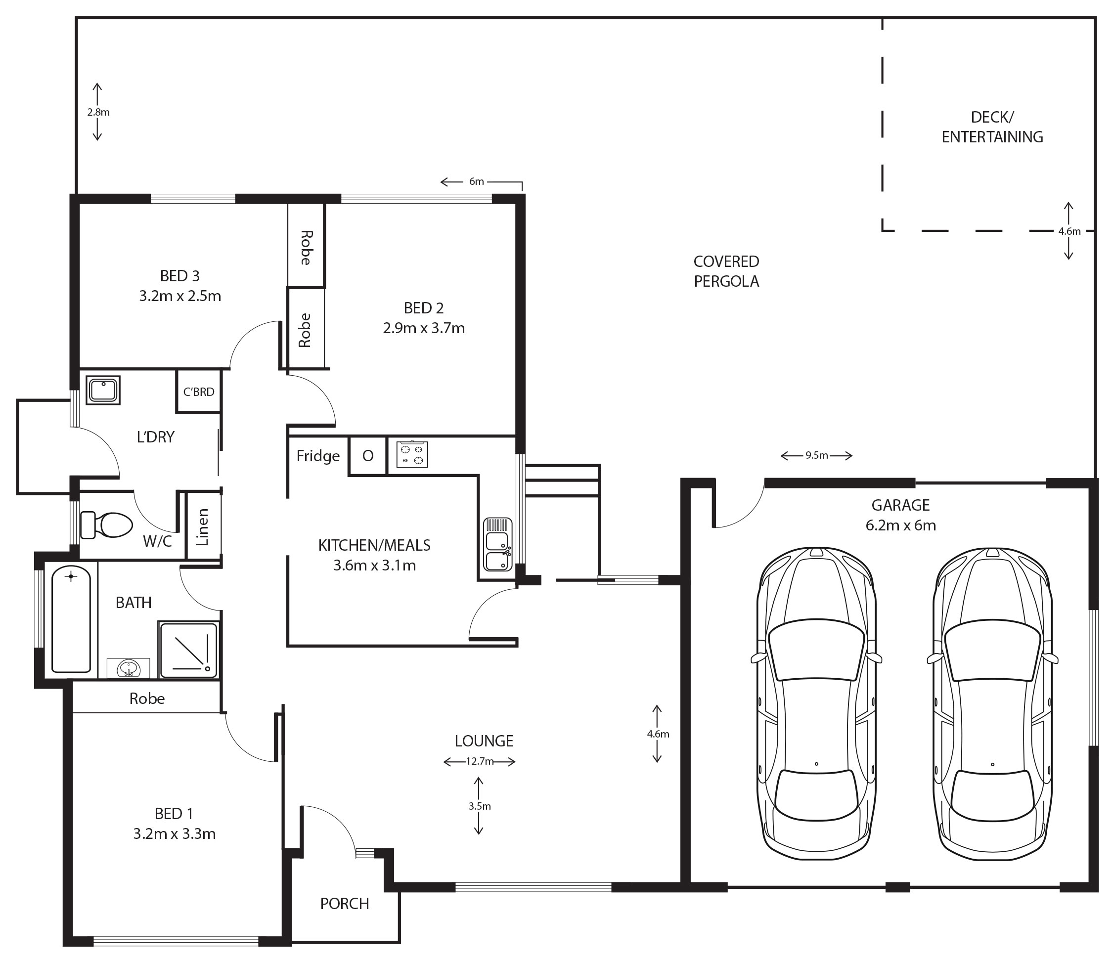 • Three bedrooms with built in robes, family bathroom
