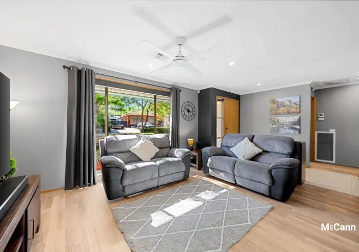 Comfortable living is guaranteed with a light filled lounge room that anchors the home and provides a perfect space to relax. Family living has been extended into the double garage that has seen some clever updates to provide a flexible, multipurpose space. It features a reverse cycle unit for comfort and carpet-tiled flooring, making it an ideal spot for games or hobbies. This space maintains the flexibility to function as both an additional living area and a remote accessed garage.