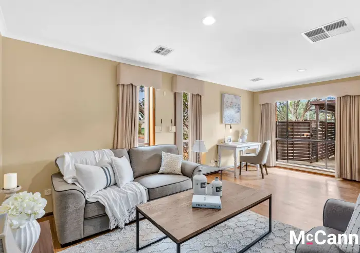 Timber flooring flows from the kitchen into the adjoining dining space and through to the separate lounge. Flooded with natural light, the lounge room is spacious enough to be furnished into zones to provide a flexible, family-friendly space.