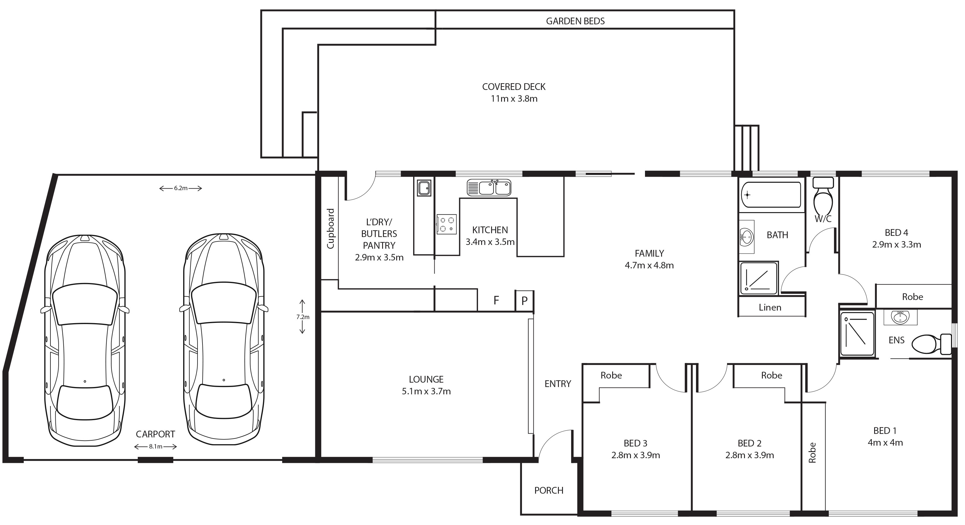 ● Four bedrooms with robes, master with ensuite