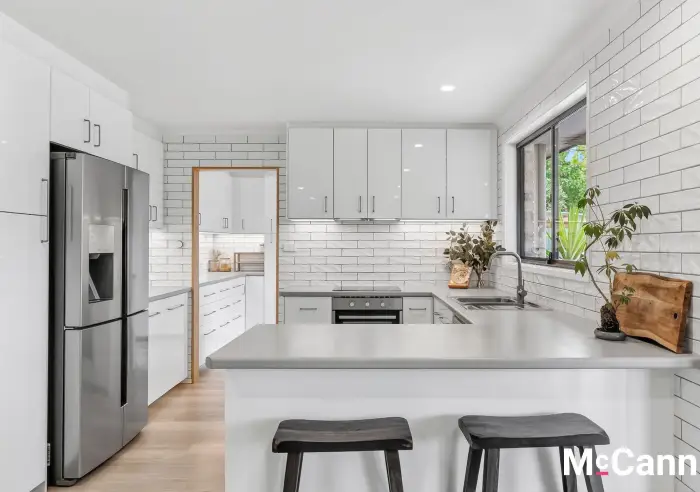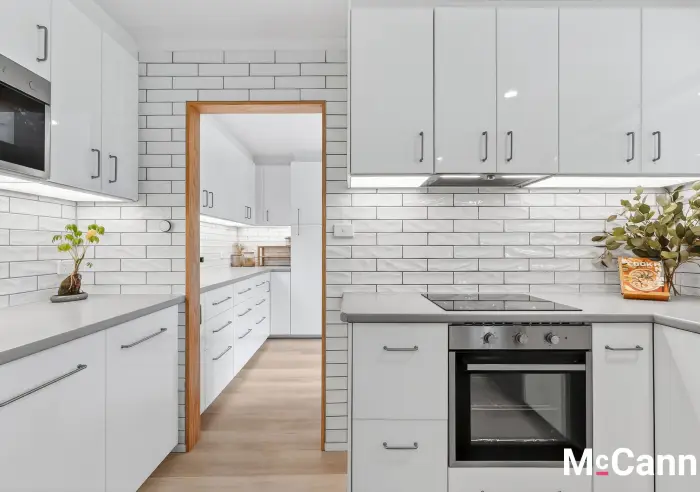 The renovated, modern kitchen sits comfortably between the two living spaces, with a crisp white colour scheme that is sure to stand the test of time. A subway tile splash back extends to the ceiling, with quality appliances including electric cooking and a dishwasher. There is a pantry and upper cabinetry providing excellent storage options that extend into the adjoining, combined butler's pantry and laundry. Here you will find room for laundry appliances, cupboards, drawers, and bench space ideal for the coffee machine.