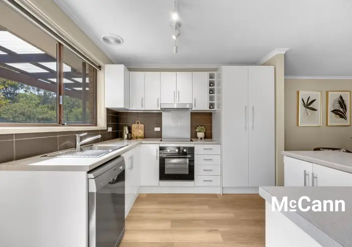 Modern, open plan living anchors the home with a light-filled kitchen, living and dining area. Updated, floating flooring flows through the space, with a freshly serviced reverse cycle unit for year-round comfort and sliding door to access the generous yard. The kitchen is refreshingly modern, with an L-shaped island bench, good storage and quality appliances including a new oven, cooktop, and exhaust.