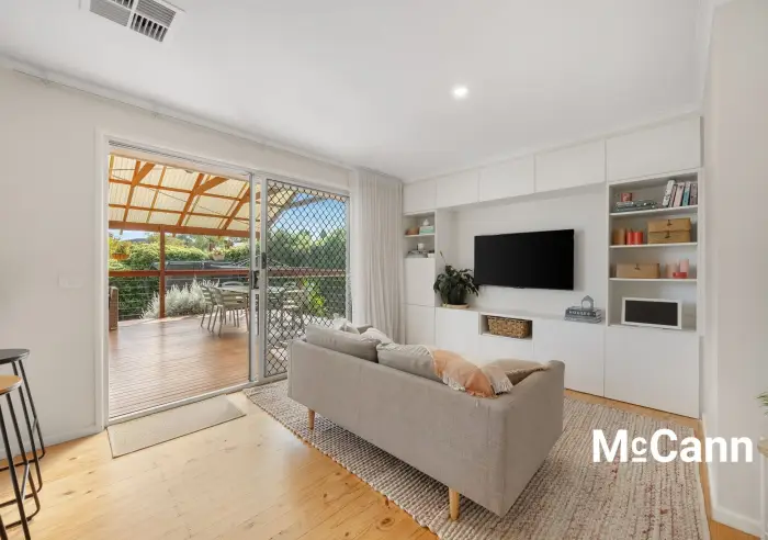From the family room, you are provided with direct access outside, onto the stunning, raised timber deck with an incredible pitched, covered pergola making the space suitable for all weather use. Perfect for entertaining, the deck overlooks the substantial backyard, that provides plenty of room for kids and pets to play on the lawn with a perimeter of established greenery that promotes privacy.